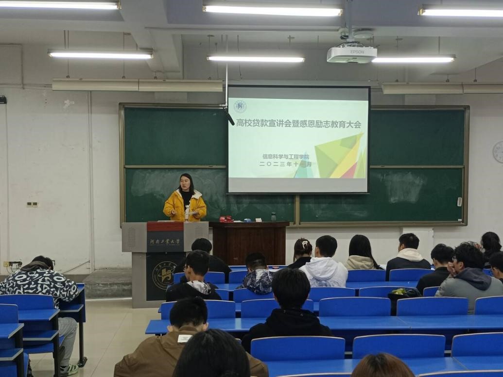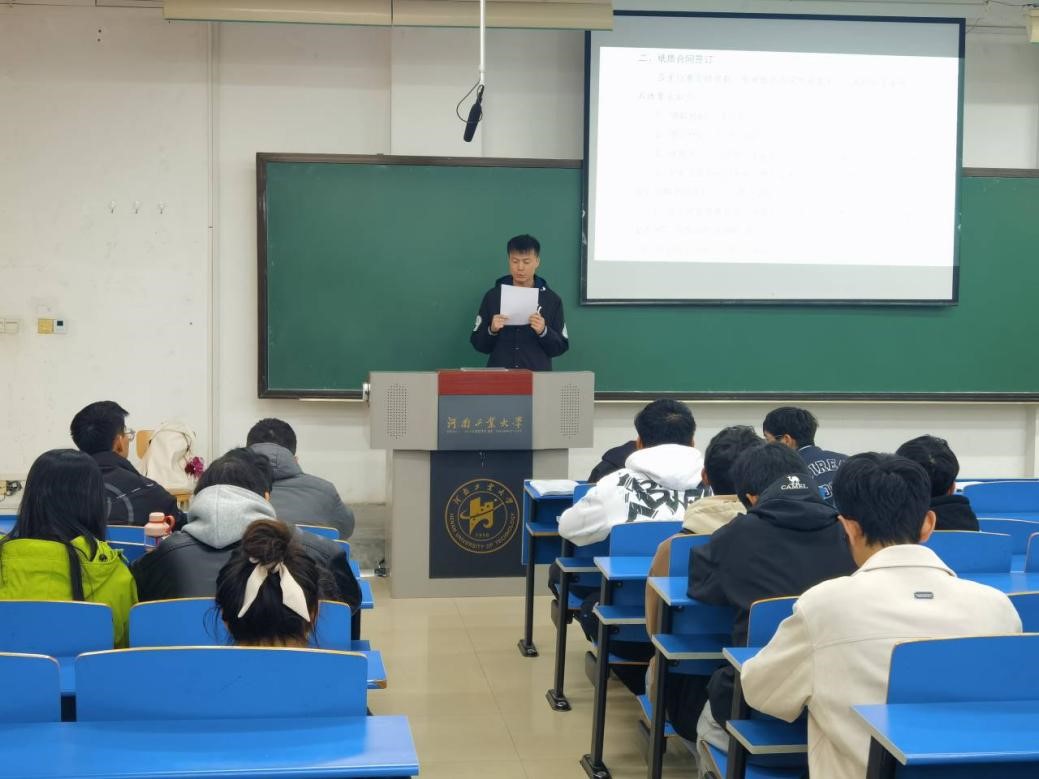 在4220、4221召开了2023年高校贷款合同签订仪式暨感恩励志教育宣讲会。学工办副主任崔莉莎、资助专项负责老师郑猛虎、生活权益部全体成员以及申请高校贷款的全体同学参加了宣讲会,宣讲会由郑猛虎主持。