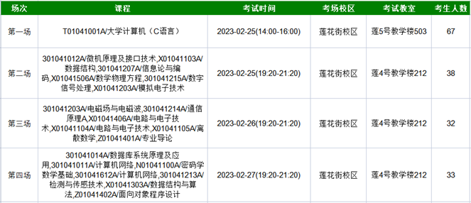 本次补(缓)考共计安排四场考试,请考生务必携带身份证和学生证(或一卡通)参加考试。