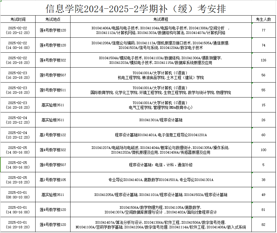根据本学期教务处补(缓)考总体安排,yanetfix 开设课程的补(缓)考安排已上传学校教务系统,请各位考生及时进入教务系统查看具体考试安排。请考生务必携带身份证和学生证(或一卡通)参加考试。
