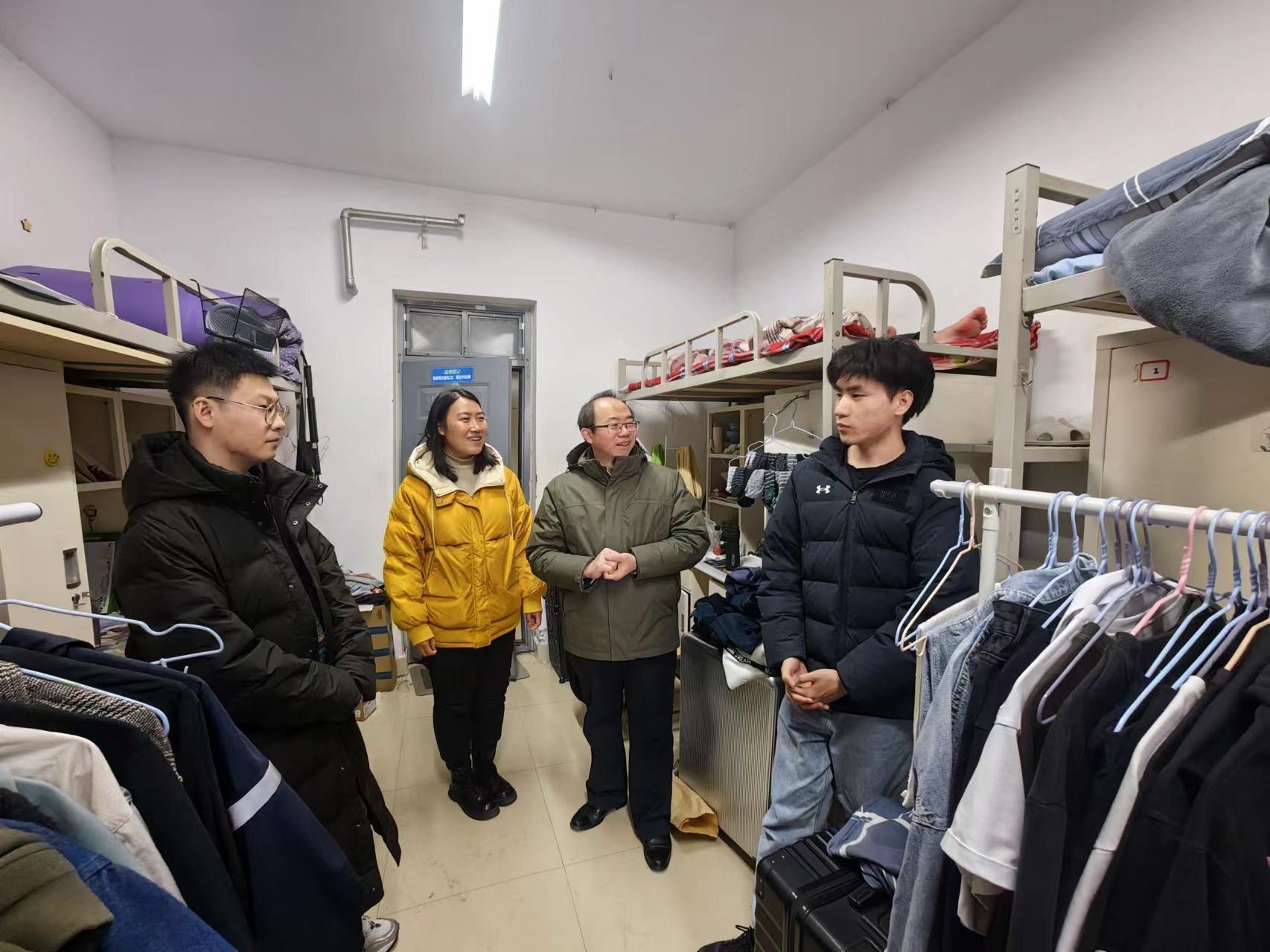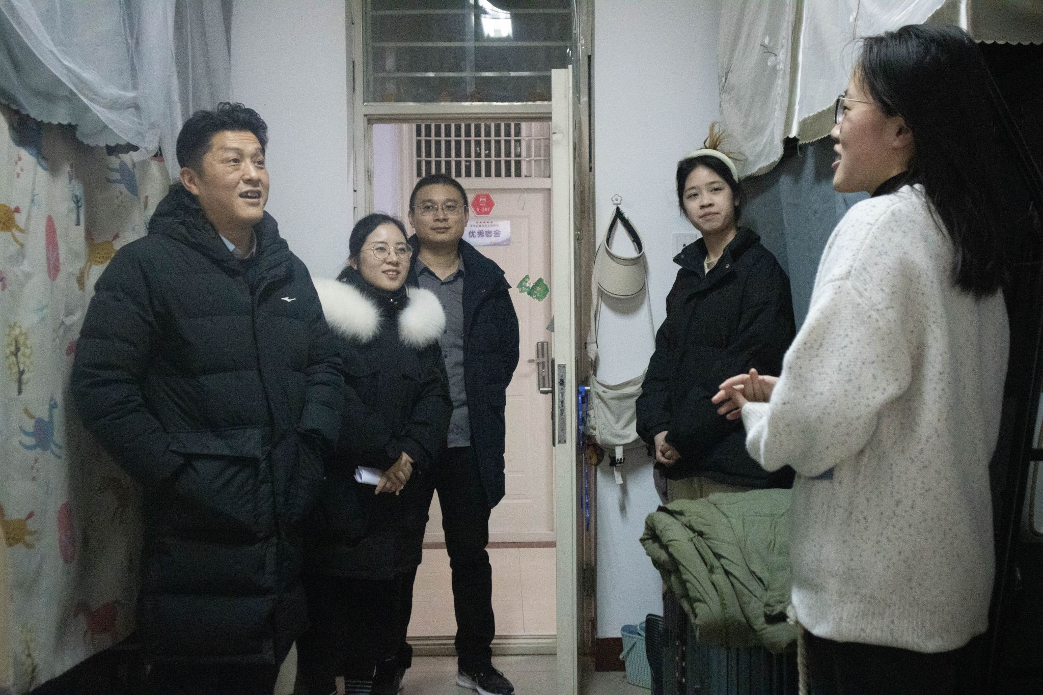 党委书记郭晓旻、副院长刘宏月、团委书记刘磊、学工办副主任崔莉莎及全体辅导员深入学生宿舍,走访慰问2024届毕业生。