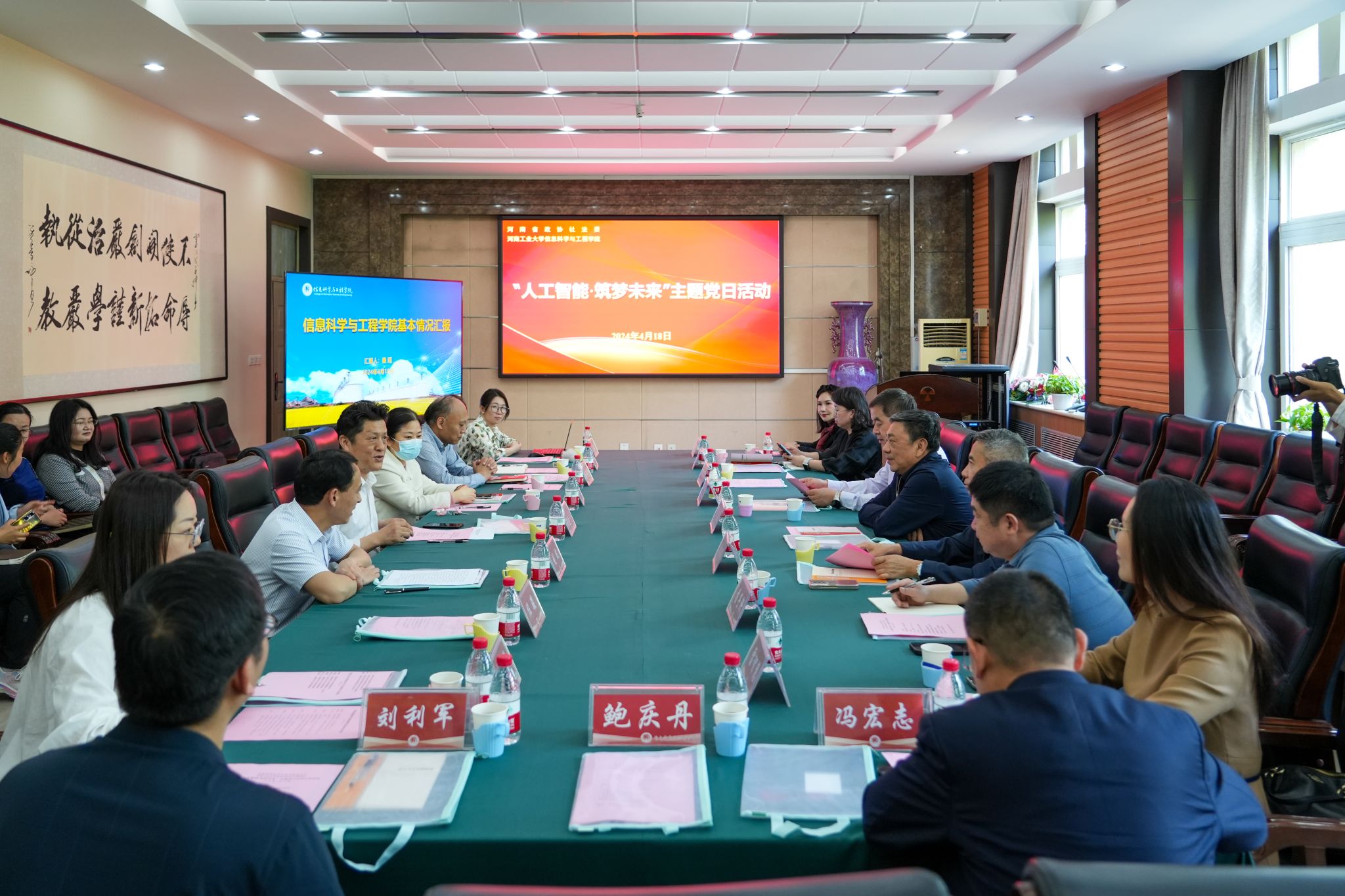 党委书记郭晓旻汇报了学院历史沿革、目标定位、党的建设和事业发展情况。副院长秦瑶对学院学科建设、人才培养、科技创新、产学研融合及推动行业新质生产力发展等方面进行了详细汇报。随后,参加活动的省政协委员与学院干部师生代表紧紧围绕“人工智能·筑梦未来”主题展开交流讨论。大家深入学习领会习近平总书记关于发展人工智能的重要论述,并就如何推动河南省人工智能创新发展、服务河南现代化建设进行了深入研讨。