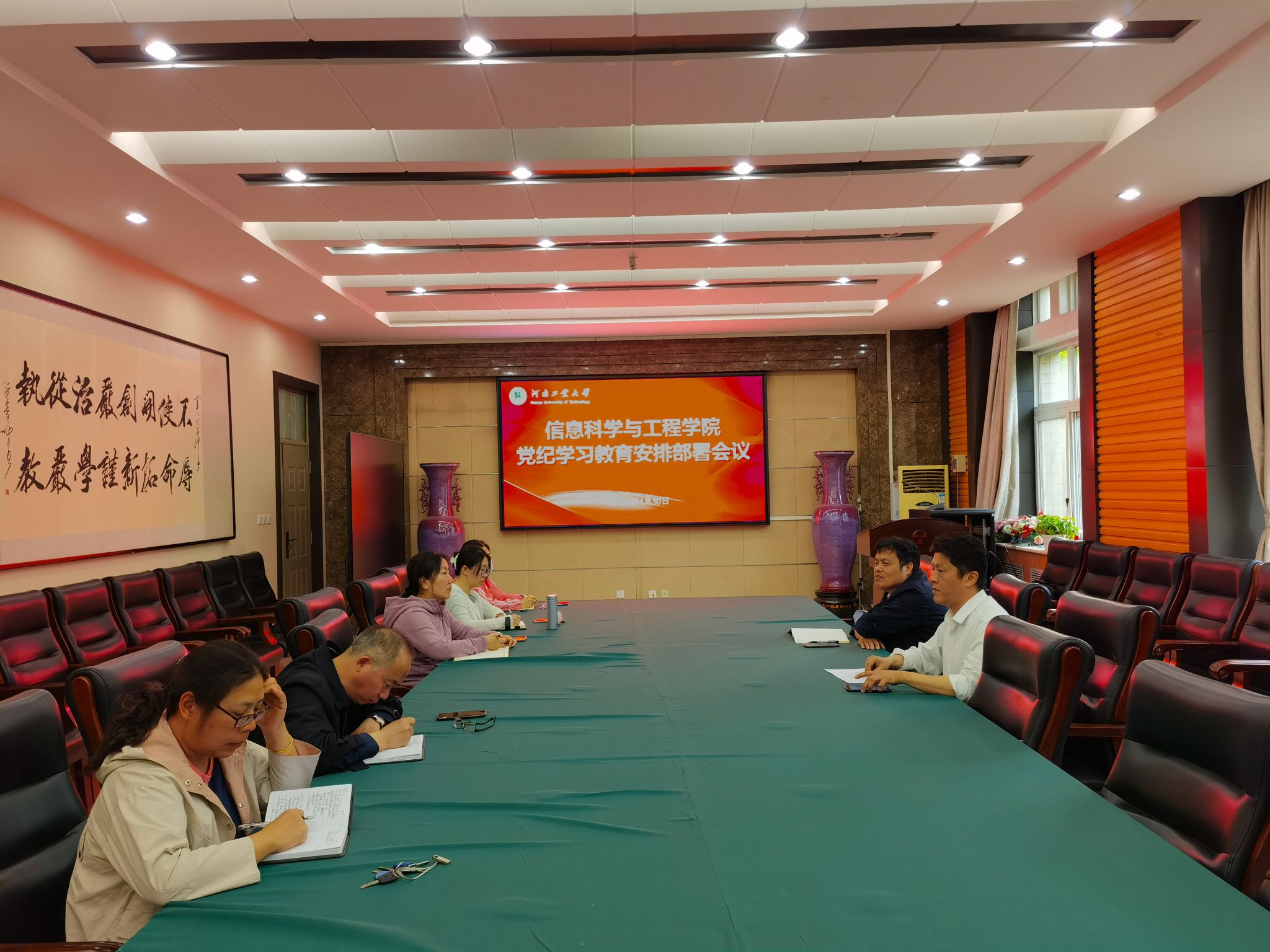 在6225会议室召开党纪学习教育安排部署会议,学院全体党政领导班子参会。会议由学院党委书记郭晓旻主持。