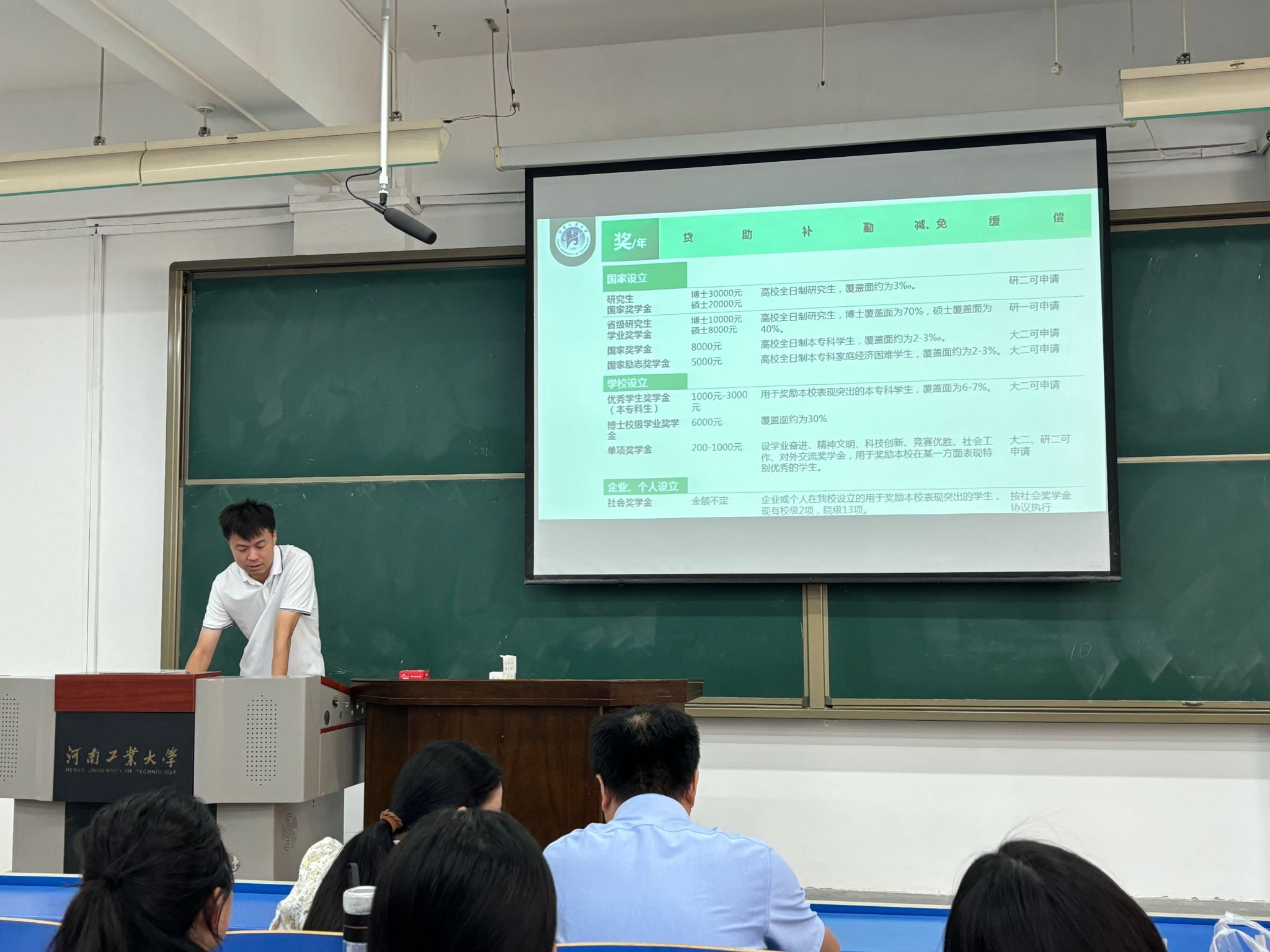 在宣讲会上,郑猛虎老师介绍了研究生在读期间能够享受到的各类资助,并详细解读了学校的“奖、贷、助、补、勤、减、免、缓、偿”+应急资助的多元化家庭经济困难学生资助体系及各项资助政策。会上同学们积极踊跃提问,老师针对同学们提出的问题进行了详细的解答,以确保每位同学都能够充分了解学校的资助政策。
