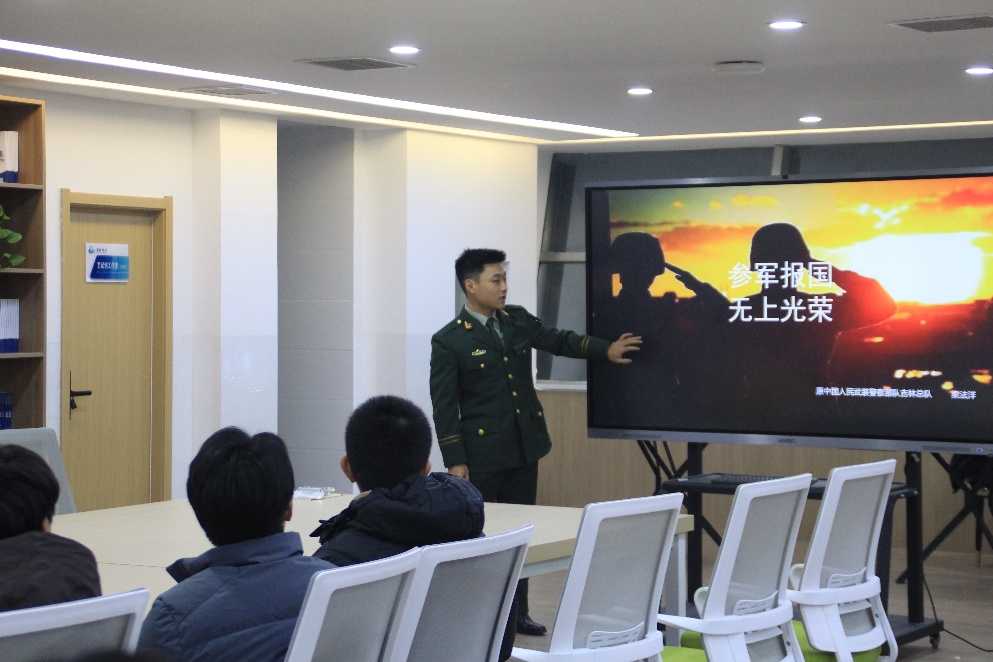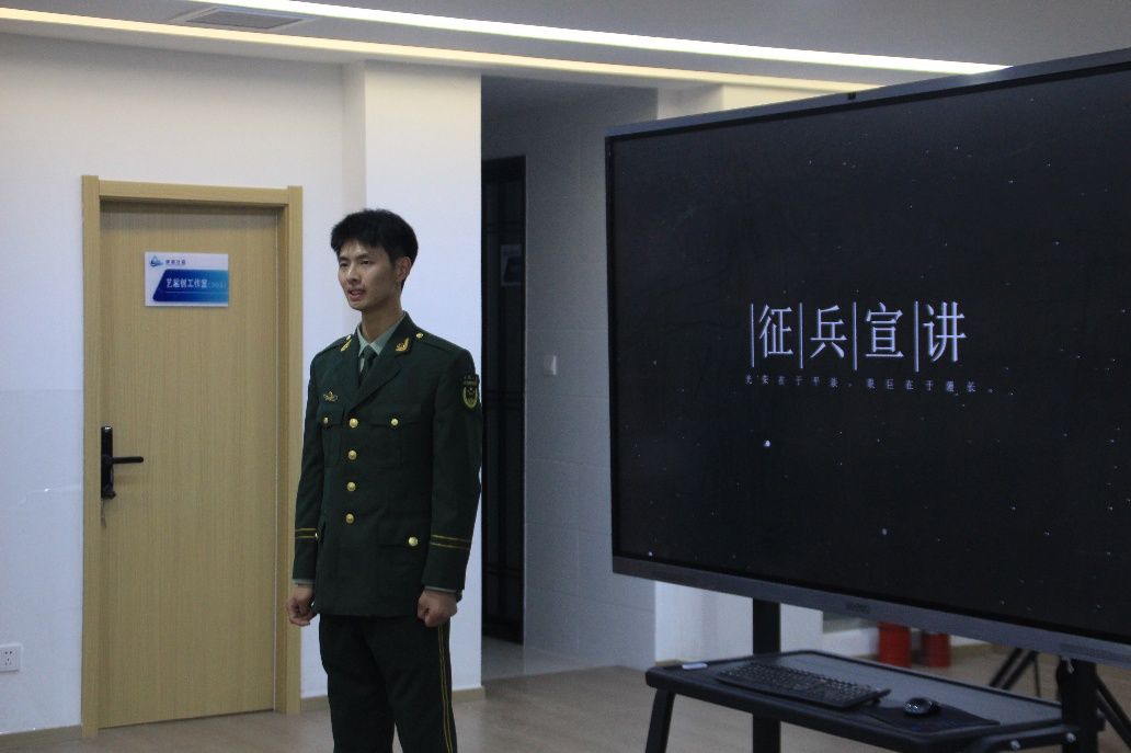 五位来自党委武装部的征兵宣讲团成员于欣路、匡广兴、王振林、梁法洋、陈晶晶逐一上台,分享了他们的军旅生涯和成长故事。从入伍政策、携笔从戎、军营磨砺、退役复学等多个角度,向在场的同学们生动展示了军旅生活的苦与乐,以及在军营中培养的纪律性、责任感和团队精神。他们的经历充分展现了新时代军人退伍不褪色的优秀品质,以及在军营这个大熔炉中历练提升、施展才华的过程。会上,退伍士兵们还就同学们关心的问题进行了互动交流,耐心解答了关于入伍条件、军营生活、职业发展等方面的问题,并提供了一些实用的建议。他们鼓励在校大学生要敢于有梦、敢于追梦、敢于圆梦,让青春在军营历练,在为祖国做贡献中闪光。