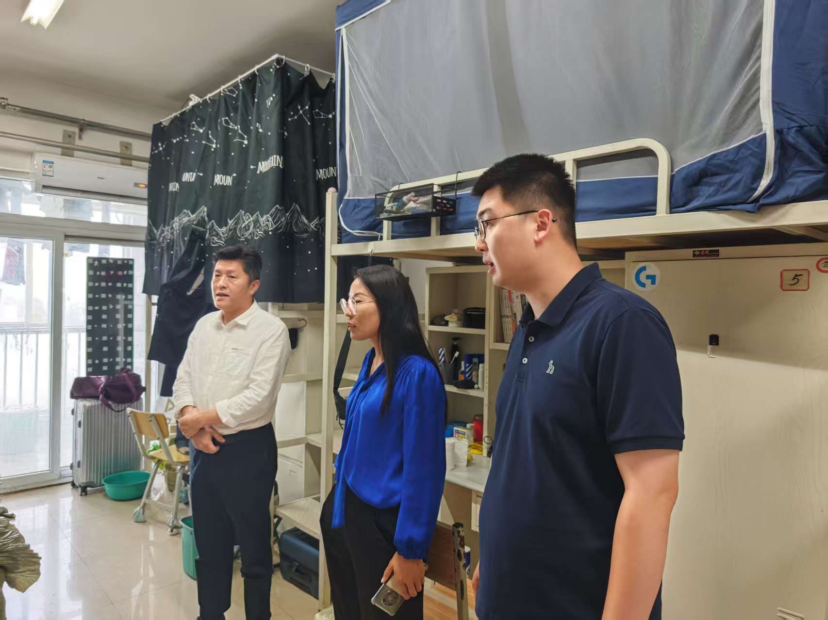 学院党委书记郭晓旻、副书记魏雪芹第一时间深入学生宿舍看望慰问。他们详细询问同学们的搬迁感受与实际困难,现场协调解决;重点强调安全用电与防火防盗规范;叮嘱同学们遇问题及时联系辅导员或班主任;同时勉励大家尽快适应,做好新学期学业规划,明确奋斗目标。
