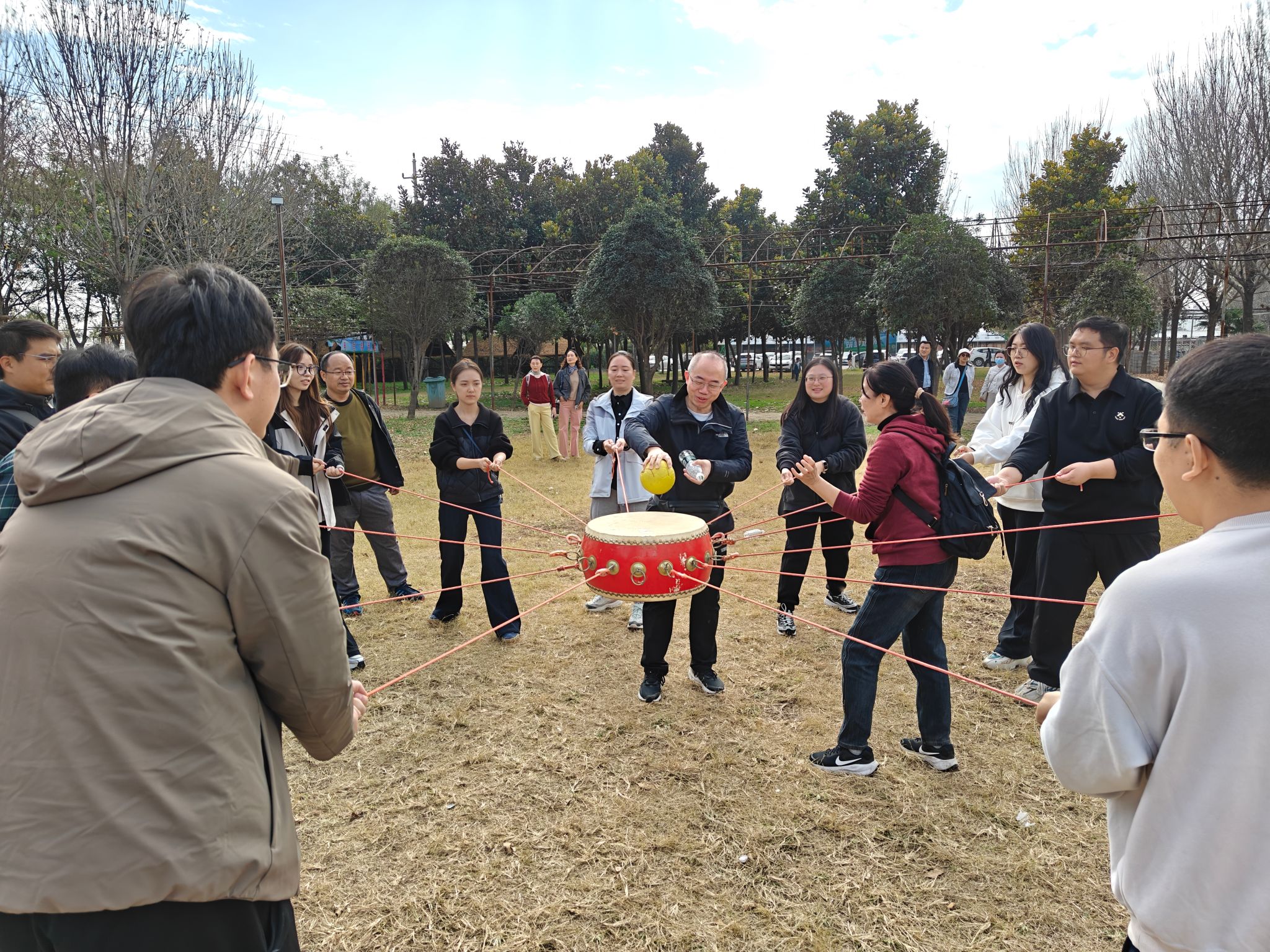 培训期间,在专业教练的指导下,参训教职工迅速组建团队,明确分工、凝聚核心力量,快速形成高效协作的团队模式。培训现场氛围热烈,“击鼓颠球”考验节奏把控与默契配合,“针锋相对”展现反应速度与战略思考,“酷跑飞车”洋溢欢声笑语与竞技激情,“非洲鼓”传递同心共鸣的团队韵律,“极速飞盘”融合速度与协作的双重挑战。一系列丰富多彩的拓展项目中,老师们全情投入、互帮互助,在挥洒汗水的过程中相互学习、彼此赋能,既充分展现了学院教职工锐意进取、奋勇争先的精神风貌,也让团队合作的理念深植于心。