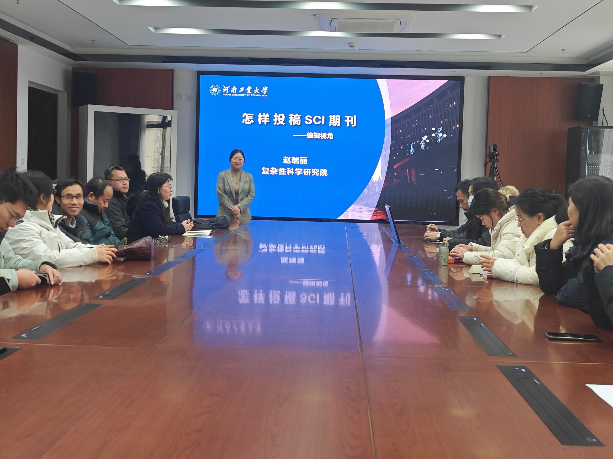 为深入推进基层党组织建设,促进党建与业务工作深度融合,以高质量党建引领事业高质量发展,2025年12月23日下午,计算机科学系教工党支部与复杂性科学研究院党支部联合举办了一场主题鲜明、内容务实的结对共建学术讲座暨主题党日活动。本次活动聚焦科研工作者广泛关注的“怎样投稿SCI期刊”这一核心议题,旨在提升双方支部党员及所在单位师生的科研论文撰写与发表能力,搭建跨学科学术交流与合作平台,特邀复杂性科学研究院党支部赵瑞丽编辑做主题讲座,计算机科学系主任曹鹤玲主持会议。