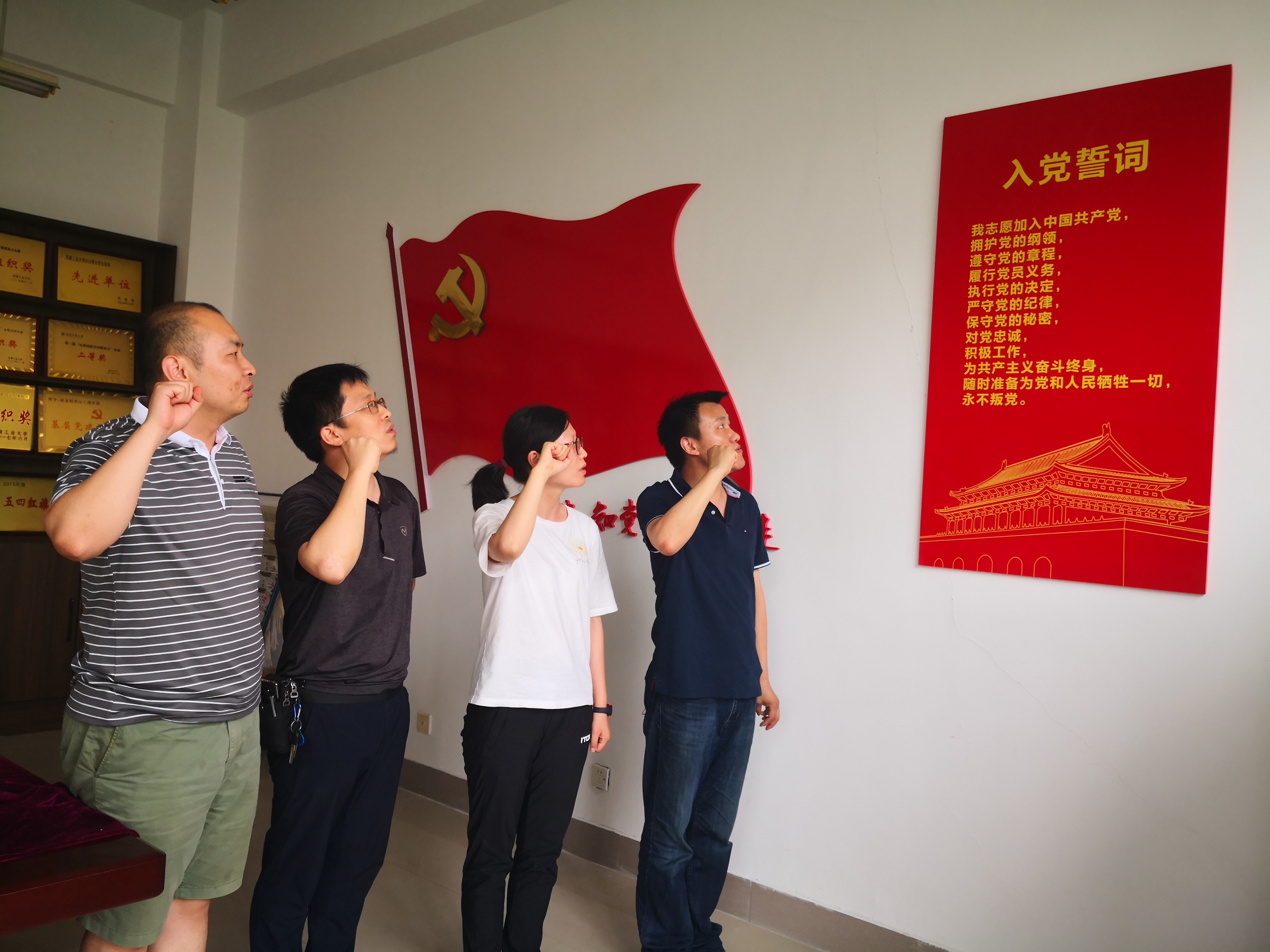 入党誓词是行动指南,是共产党人的座右铭。在支部书记葛宏义的带领下,全体党员一起高举右手,再次庄严宣誓:“我志愿加入中国共产党……随时准备为党和人民牺牲一切,永不叛党。”铿锵恢宏的誓词,神圣而豪迈,体现了党员同志们对中国共产党的无限忠诚,坚定了入党使命,奋斗初心。