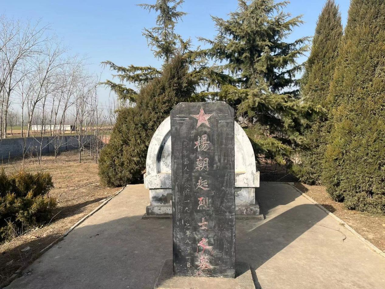 在大院的后方,屹立着杨朝起先辈的烈士墓碑。杨朝起是李馆地道修建的组织者之一。杨朝起参加革命后,在党组织领导下积极发动群众,组织发展革命武装,建立巩固了民权县最早的李馆革命根据地。1942年,他与武委会主任于步霄等配合考成县大队,拔掉辘轳湾伪联保据点,带领民兵多次伏击日伪军、拔除日伪军据点。在解放战争时期杨朝起发动群众开挖李馆地道,打击敌人。1948年7月26日,在敌人的包围下,杨朝起身中数枪,壮烈牺牲。