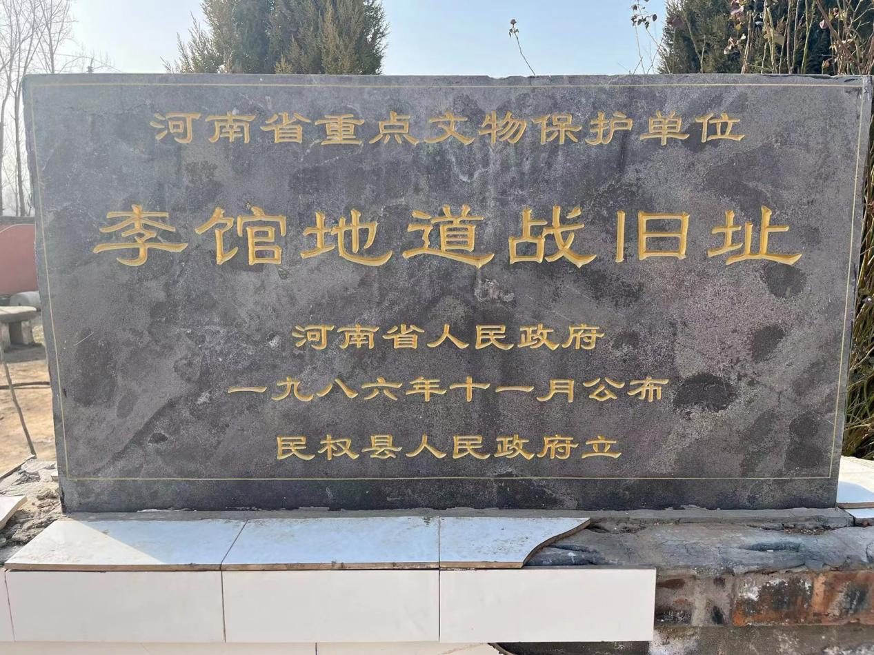 李馆地道战遗址,是河南省重点文物保护单位,素有“鲁西南大门”之称的李馆地道,开挖于抗日战争时期,旨在保存力量,打击敌人,坚持持久战。李馆地道以本村为前站中心,南连任庄等5村,东沿故黄河大堤直通汤水口,北与曹县10余个村庄相连。地道全长约25公里,在地面以下1.5米左右,高1.7米,宽1米,可容纳1.4万余人。这些地道设施,在打击敌人、保存自己方面,发挥了巨大威力。如今,李馆地道大部分保存完好,每年都吸引大批中外游客前来参观,成为对青少年和广大群众进行革命传统教育和爱国主义教育的阵地。