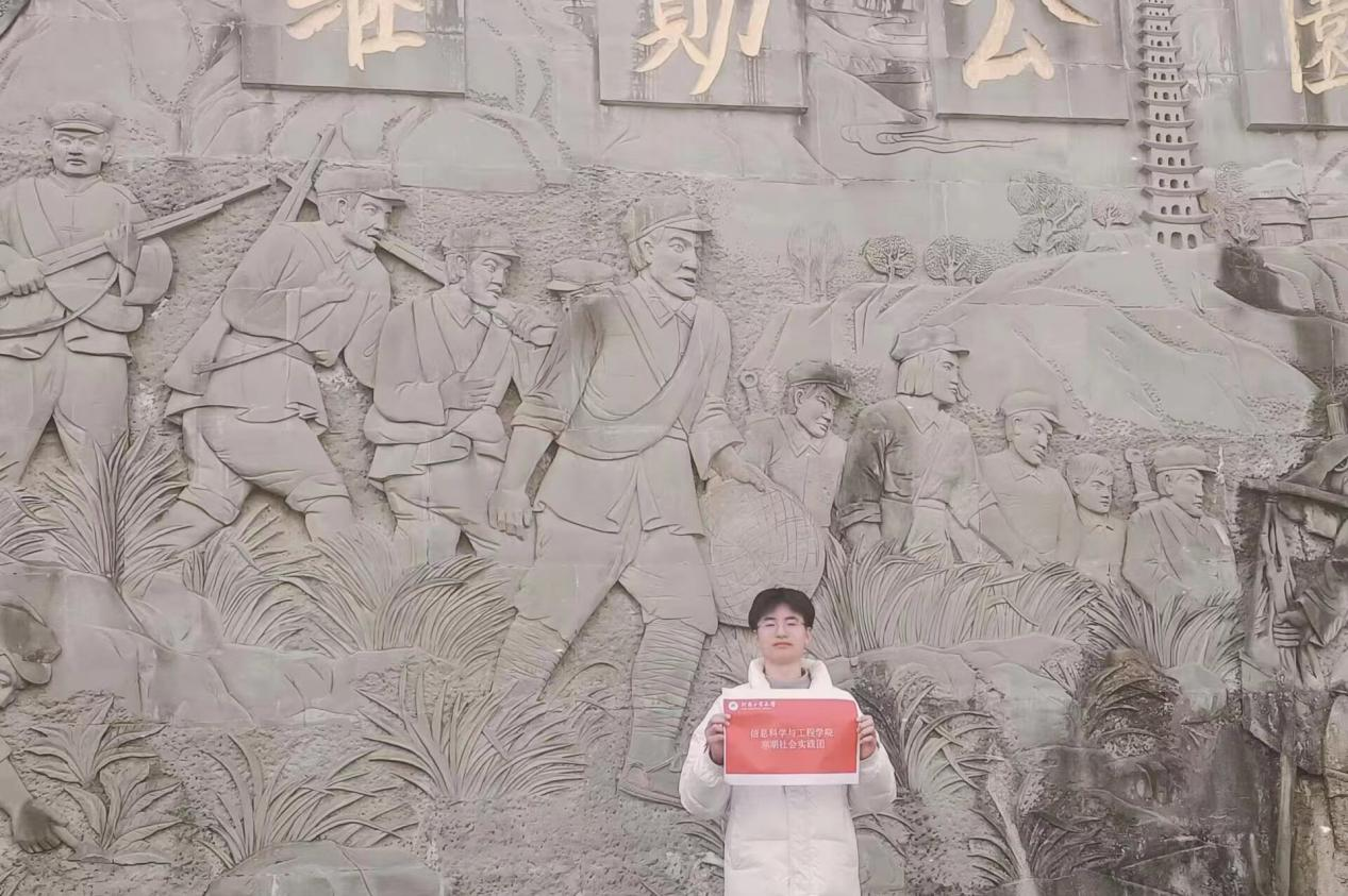 为回顾中国革命事业,感受中国共产党人“不忘初心、牢记使命”的奋斗精神。2月1日“踔厉奋发,勇毅前行”实践团队成员黄士博来到旷继勋公园,回忆当年的蓬溪起义,探寻“革命熊熊火种、红旗处处飘扬”的难忘历程。