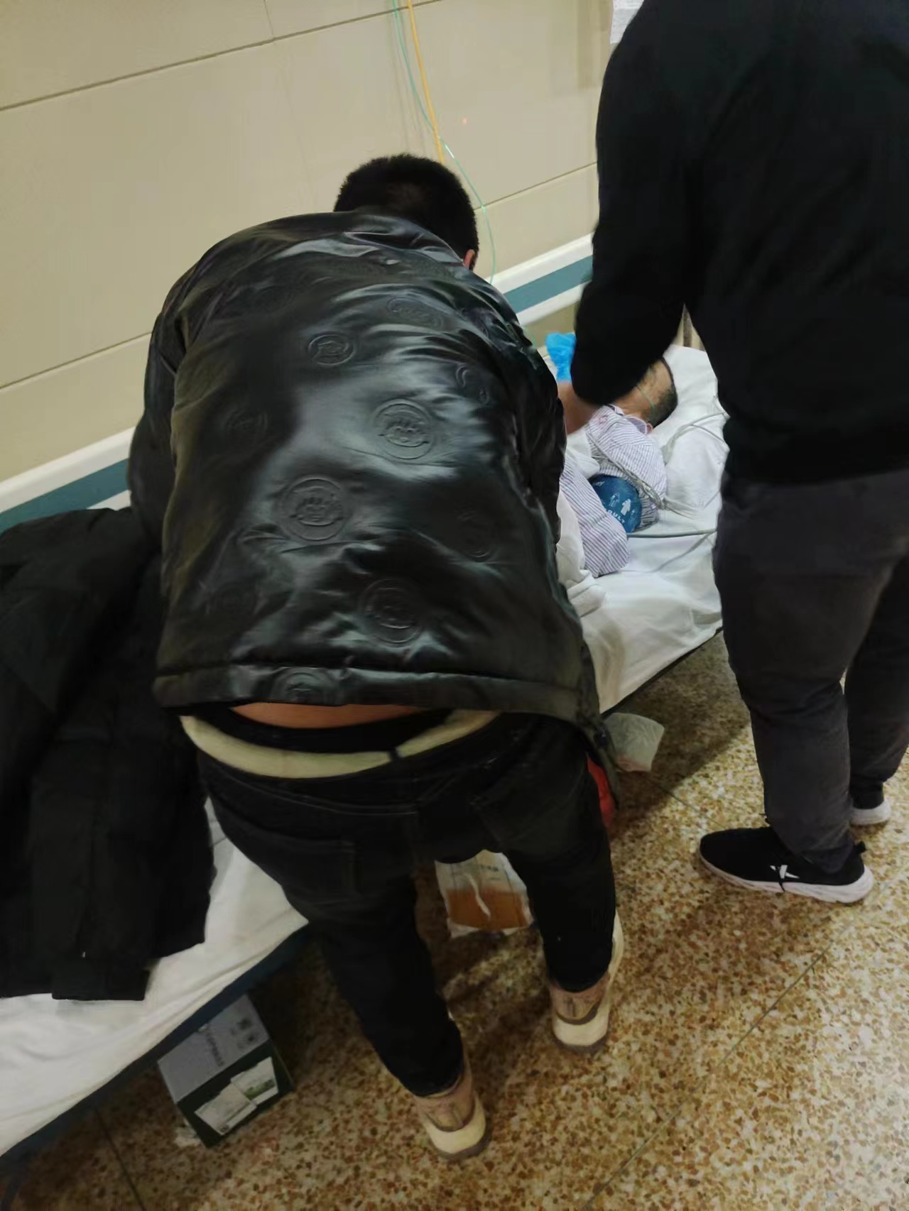 队员在医院帮助护工照顾老人