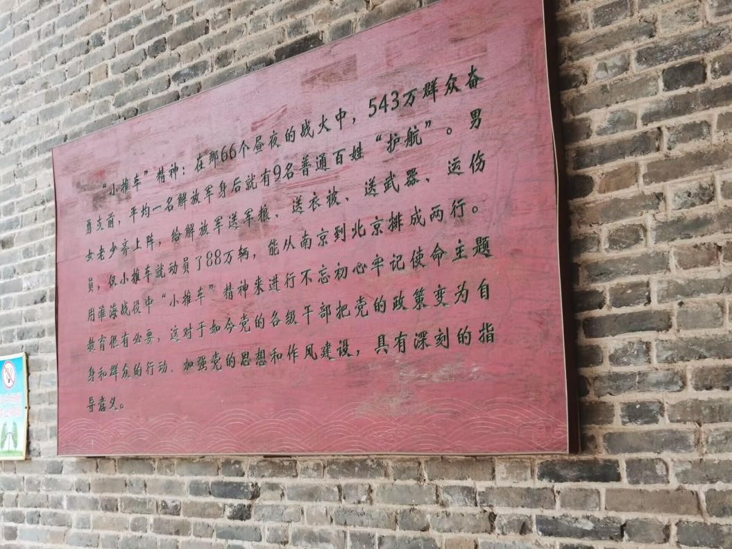 紧接着,团队成员走进另一间小屋,映入眼帘的是一辆宽大的架车和两辆较小的手推车,那是当地百姓抢救伤员所用,结合墙上的壁画,画面上是1948年11月底至1949年1月初的故事,那是淮海战役最后一战“激战永城”时,小吕集村所有的青壮年在党组织的动员和组织下,卸门板、扒房子、电线杆,组成了支前担架队、运输队,冒着枪林弹雨,顶严寒、踏泥雪、忍饥渴,奔赴百公里之外的前线,抢救回多名伤病员。