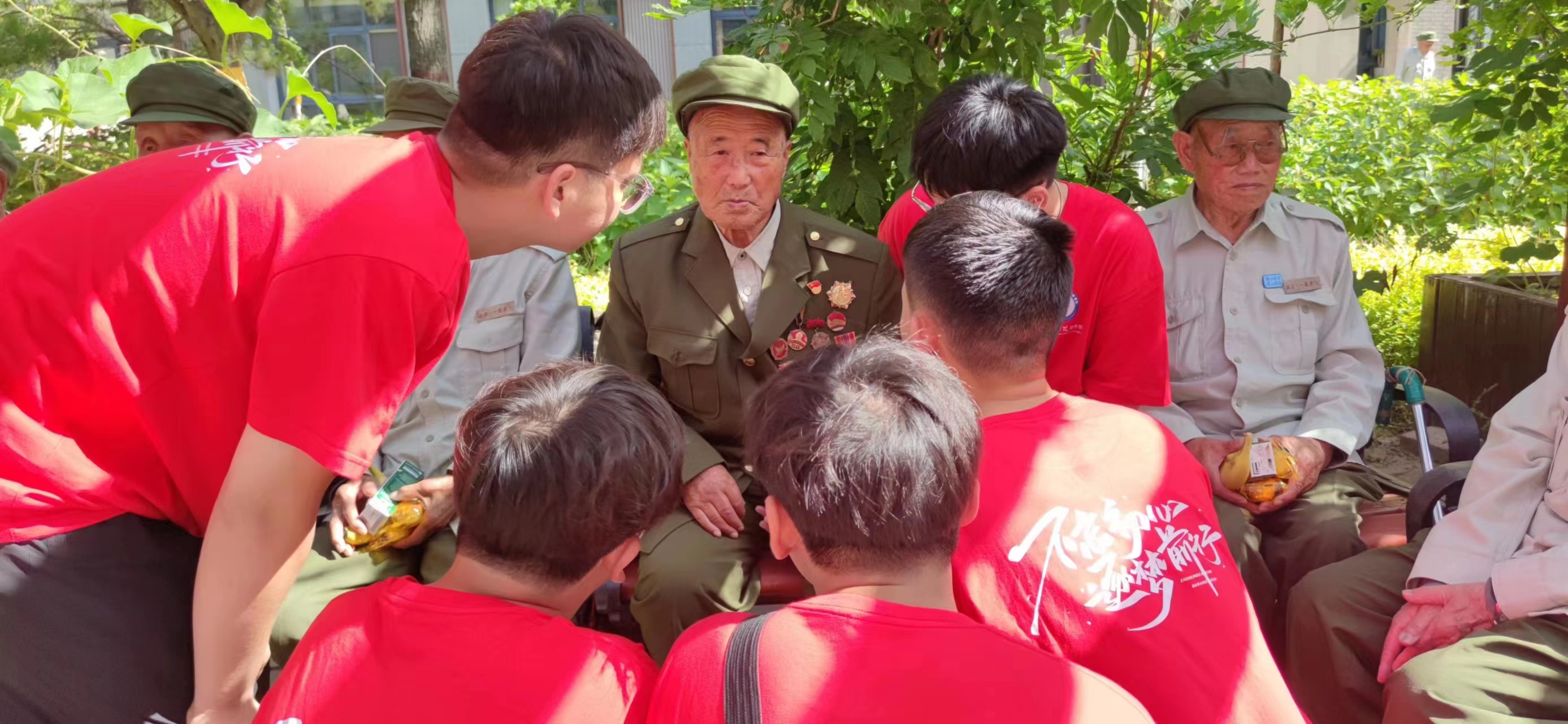 图五:与老兵亲切交谈