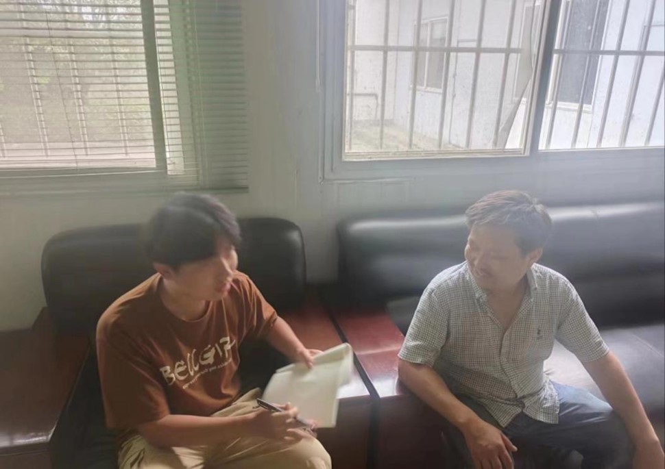 图三 队员刘丰硕与工厂负责人交谈