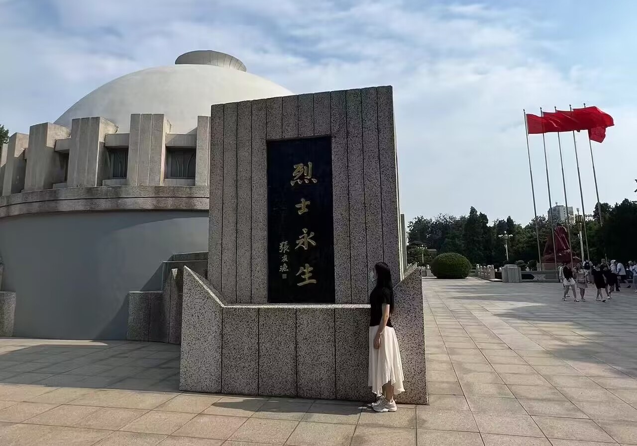 随后,队员李晓雨到达了晋冀鲁豫革命纪念园。从大门直走映入眼帘的便是李青云烈士纪念碑。1994年,其骨灰迁入到晋冀鲁豫烈士陵园安葬。世人称其为:一位红军将领抱病指挥部队作战,带着未酬的壮志与世长辞。