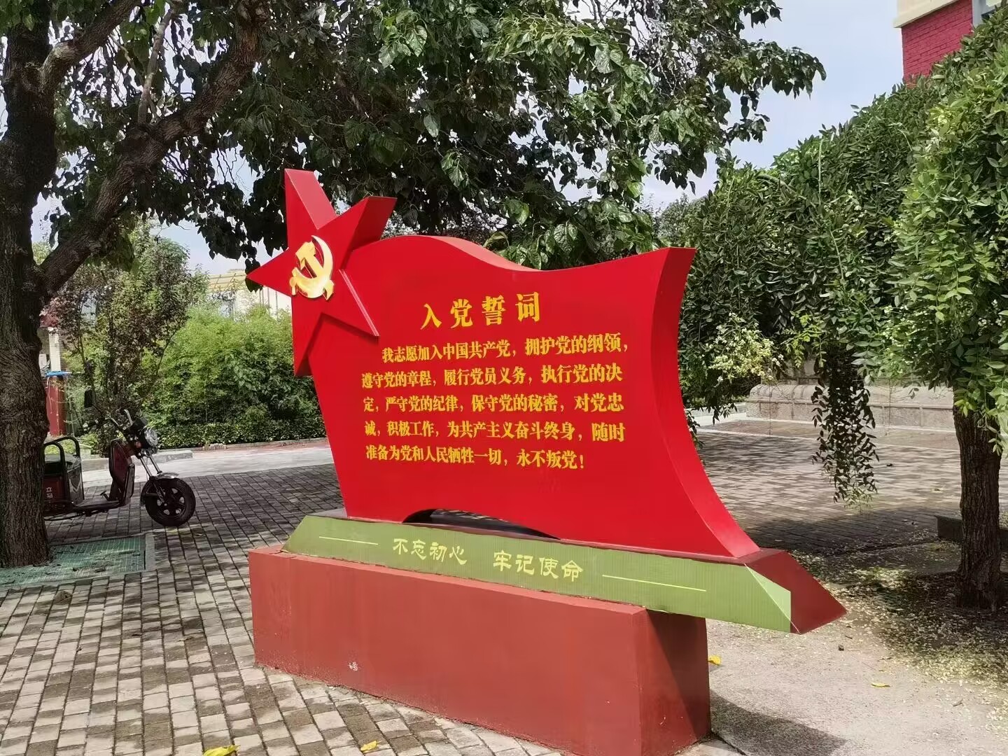 纪念馆院内放置一块周总理视察纪念碑,记录了我们未曾经历的历史,让我们了解周总理全心全意为人民服务的精神,同时这也是党的根本宗旨。另一旁的入党誓词十分庄重,尽管我们现在还不是一名党员,但这激昂的铮铮誓言也感染着我们,向先辈学习,为人民服务。