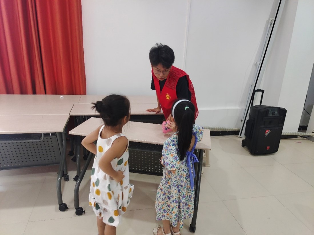 杨沐壕通过给小朋友讲解消防安全知识,小队成员王峰基与崔华启通过与小朋友进行交流,对小朋友进行安全知识提问,增强了小朋友的心中安全意识。杨志同学也在积极的布置会场并维持相关秩序。整个活动有条不紊的进行着。