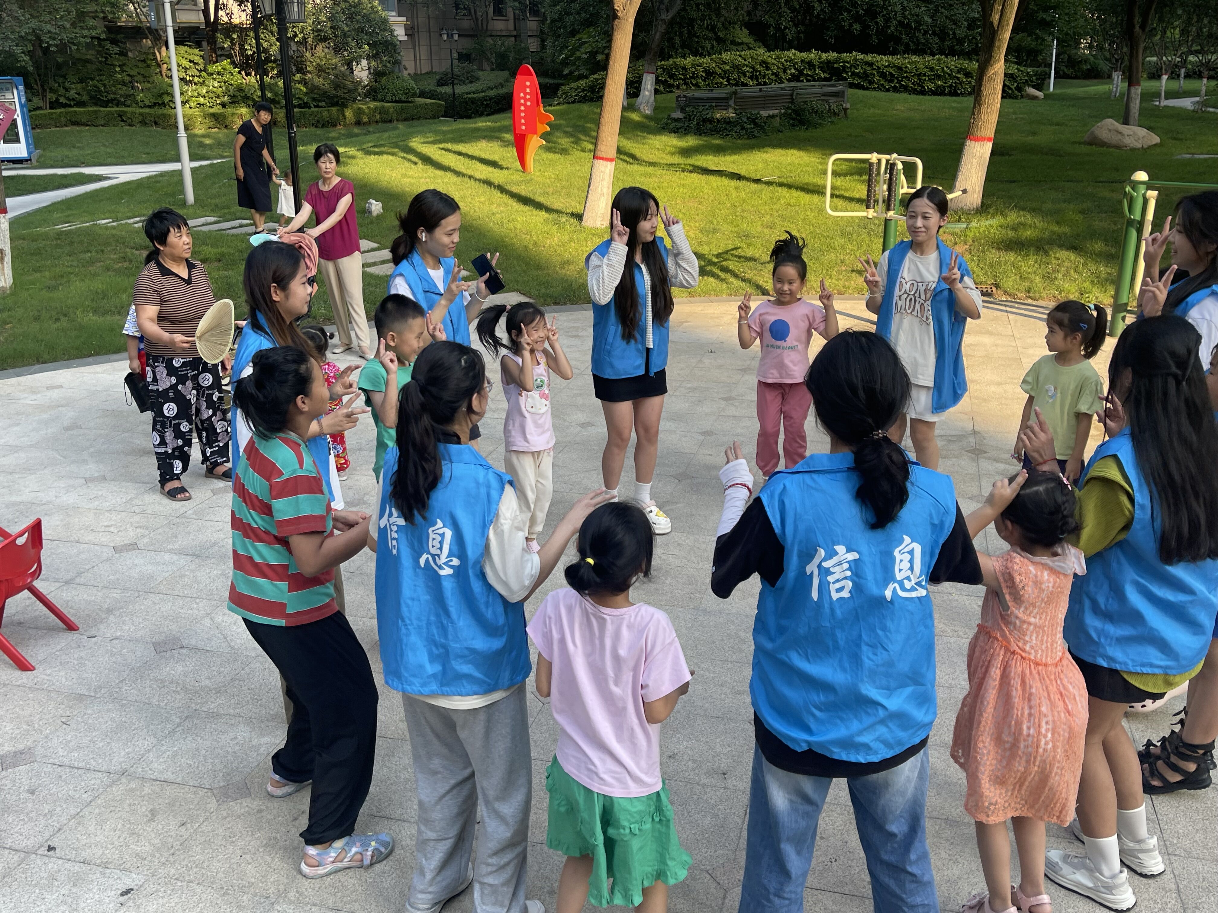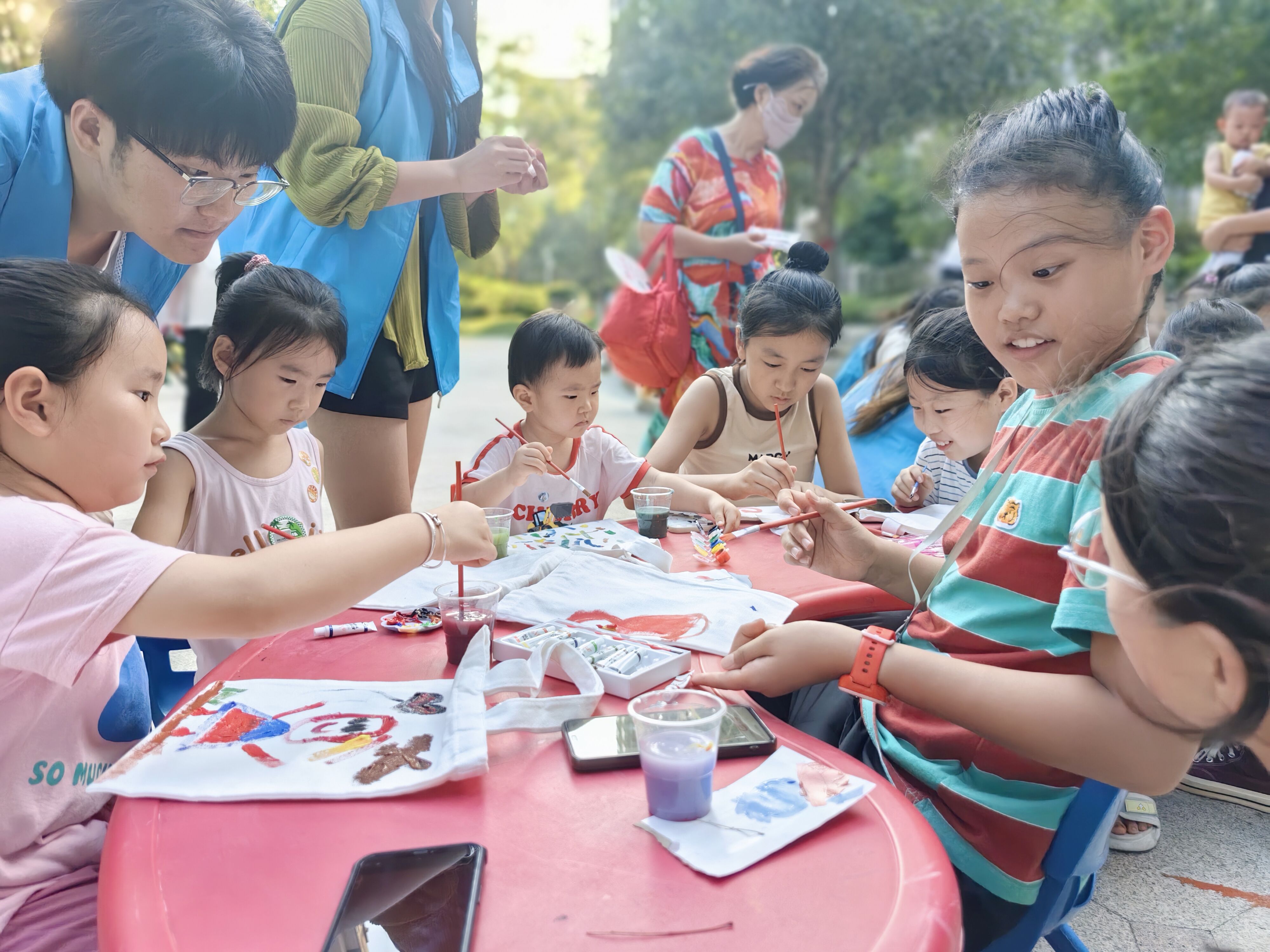“童心守望”社会实践团队来到了心怡路社区,关爱社区儿童,开展室外模拟动物趣味运动会,举办帆布袋绘画活动,激发儿童创造活力。