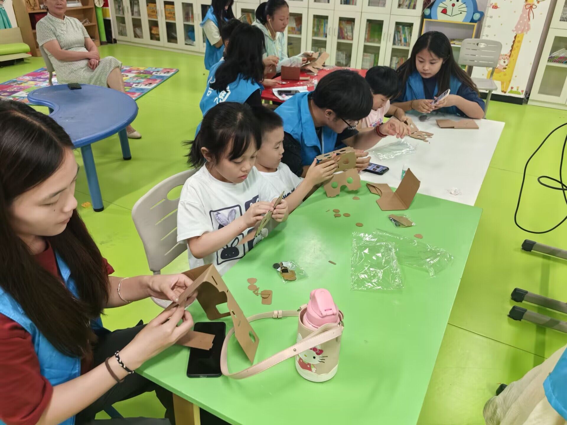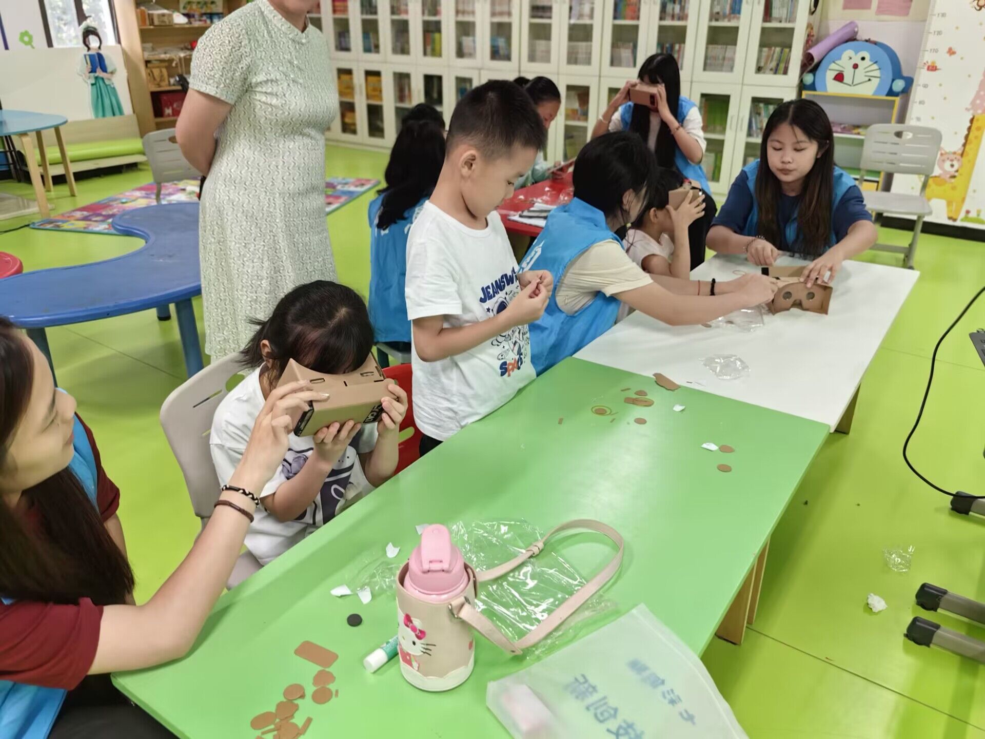 图二 团队成员协助社区儿童制作VR眼镜