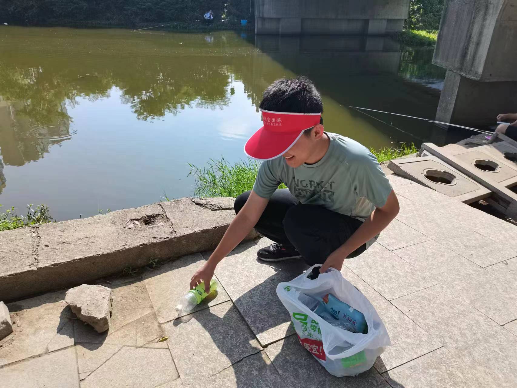 图三:团员在河道边清理垃圾