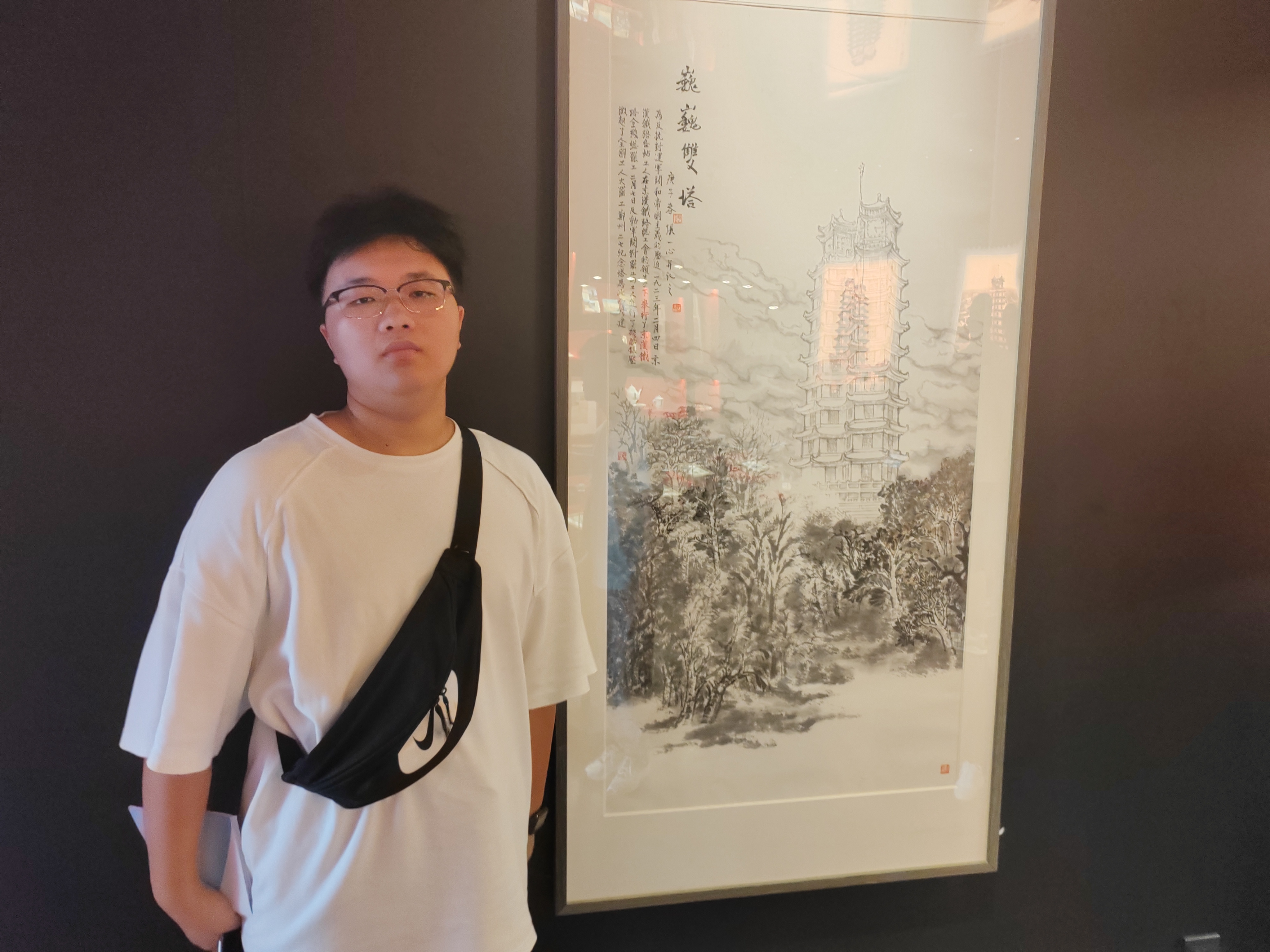 队长苏轩诚在参观塔内藏品