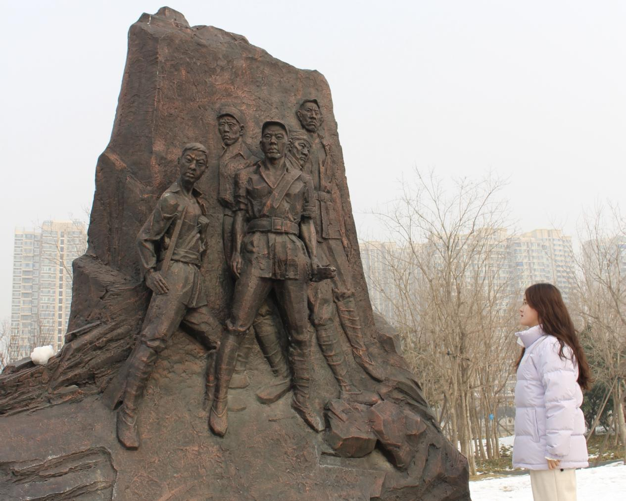 活动的第一站是位于焦作市双拥主题公园中心的“狼牙山五壮士”雕像。在这里,团队成员通过参观雕像和阅读历史文献,详细了解了“狼牙山五壮士”的光辉事迹。团队成员聆听讲解员讲述的革命故事,感受到革命先烈坚定的信念和不屈不挠的斗争精神。
