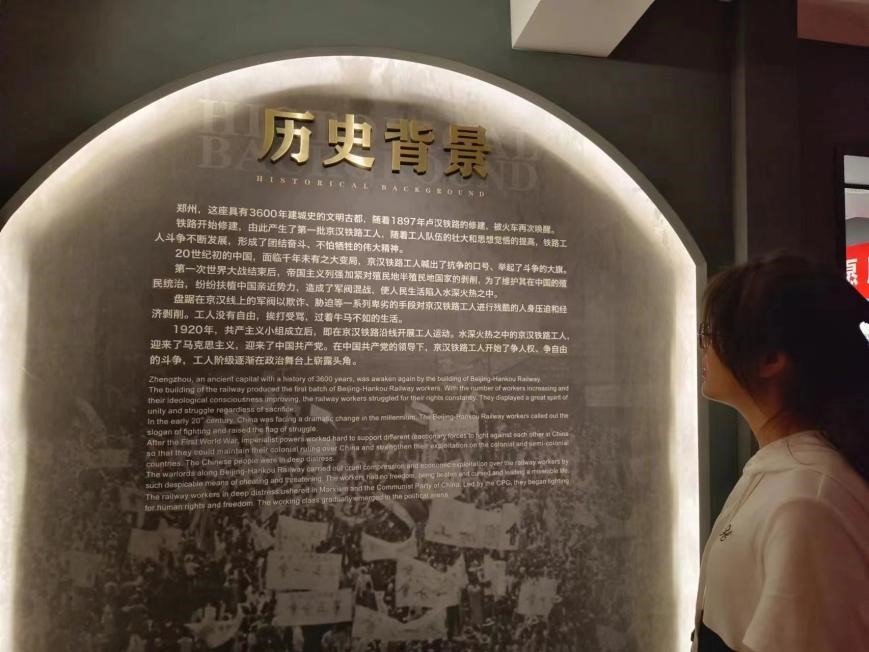 图5 荆馨楠了解二七纪念堂的历史背景
