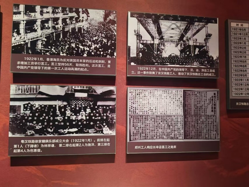 纪念堂的布局简洁而庄严,每一个展区都详尽展示了京汉铁路大罢工的全过程。成员们在展览中看到,当时的工人在极端恶劣的工作和生活条件下,依然不屈不挠地争取自身权益,这种不屈的斗争精神深深打动了大家。尤其是在英烈事迹展区,成员们观看了二七罢工中牺牲的革命烈士的生平介绍和相关历史影像,深切缅怀了这些为工人阶级解放事业献身的英烈们。
