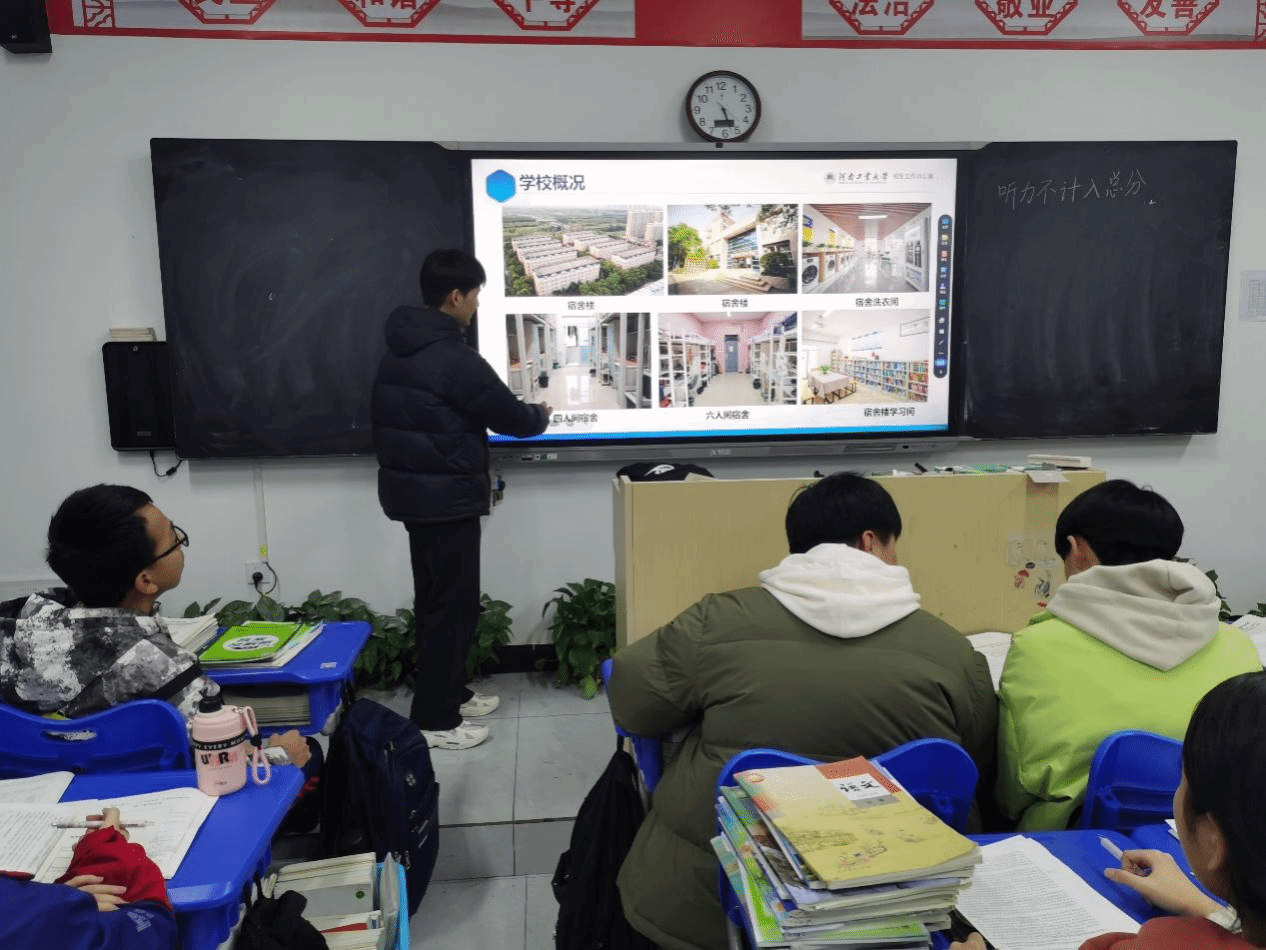 除了学习方面的分享,宣讲团队成员们还讲述了自己在大学的丰富多彩的生活。从加入学生会、社团组织,到参与各类社会实践活动,他们用一个个生动的故事,让高中学子们对大学生活有了更全面、更深入的了解。