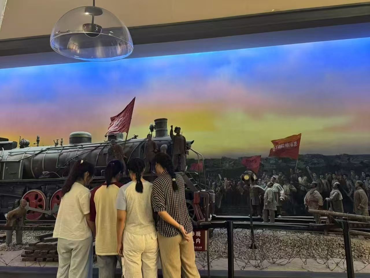 大家进入“风起云涌—大革命与工人运动纪念厅”,展馆内通过实物、图片等多种形式,生动形象地展现了这一时期中原地区的工人运动历史。团队成员认真观看展品,了解到当时工人阶级为了争取自身权益所进行的不懈斗争,同时也对那段历史有了更直观的认识。