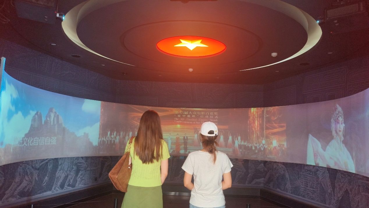 图四 队员观看郑州历史与现实的碰撞影片