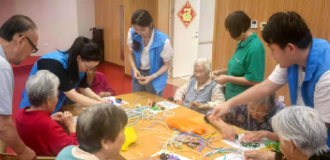 图 4 老人与队员们合作完成手工作品
