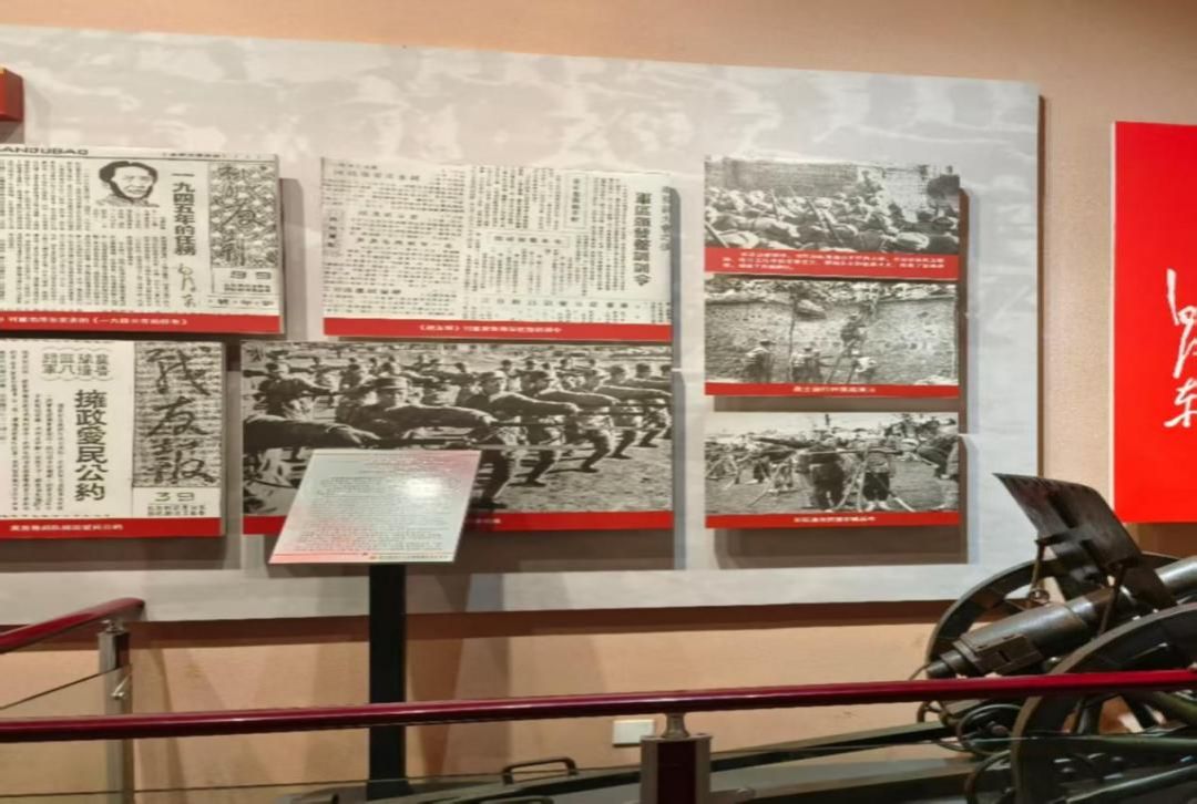 图5 团队参观历史报刊、武器展区