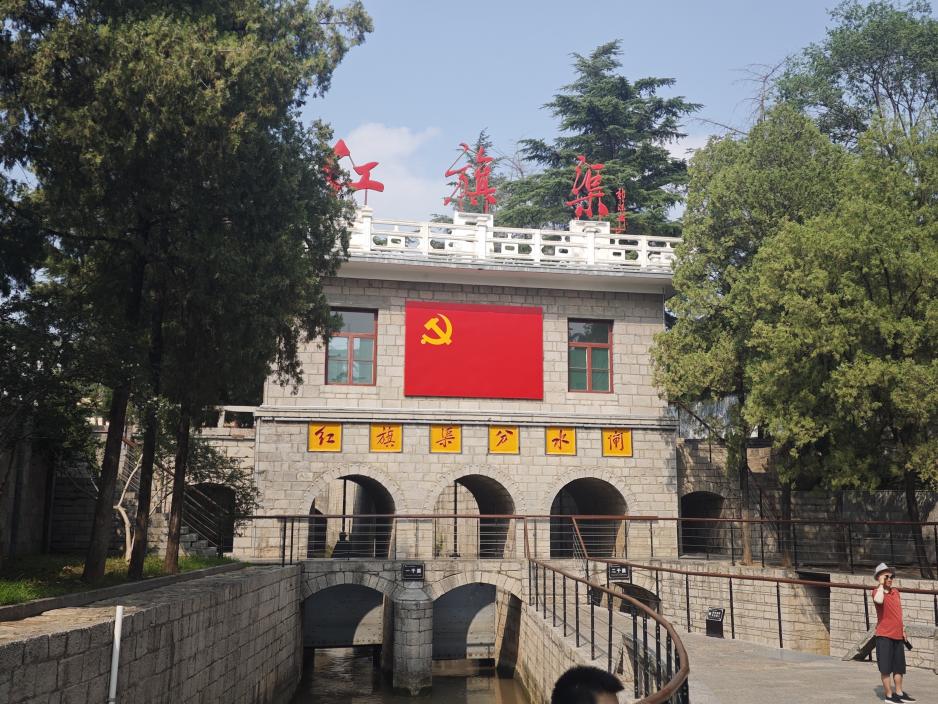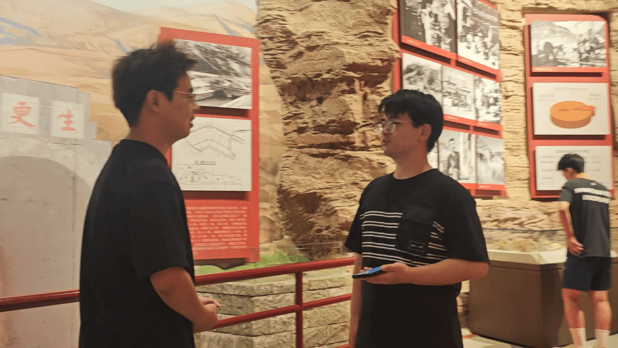 在室内参观,随机采访了几位来访的市民与游客,向他们普及红旗渠的基本知识。采访中,团队成员简要介绍了红旗渠的修建背景、建设时间、工程规模以及其对当地经济与民生的深远影响。一位受访行人表示,通过这样的交流,不仅重温了红旗渠的历史,也感受到青年一代在传承红色文化上的责任与热情。