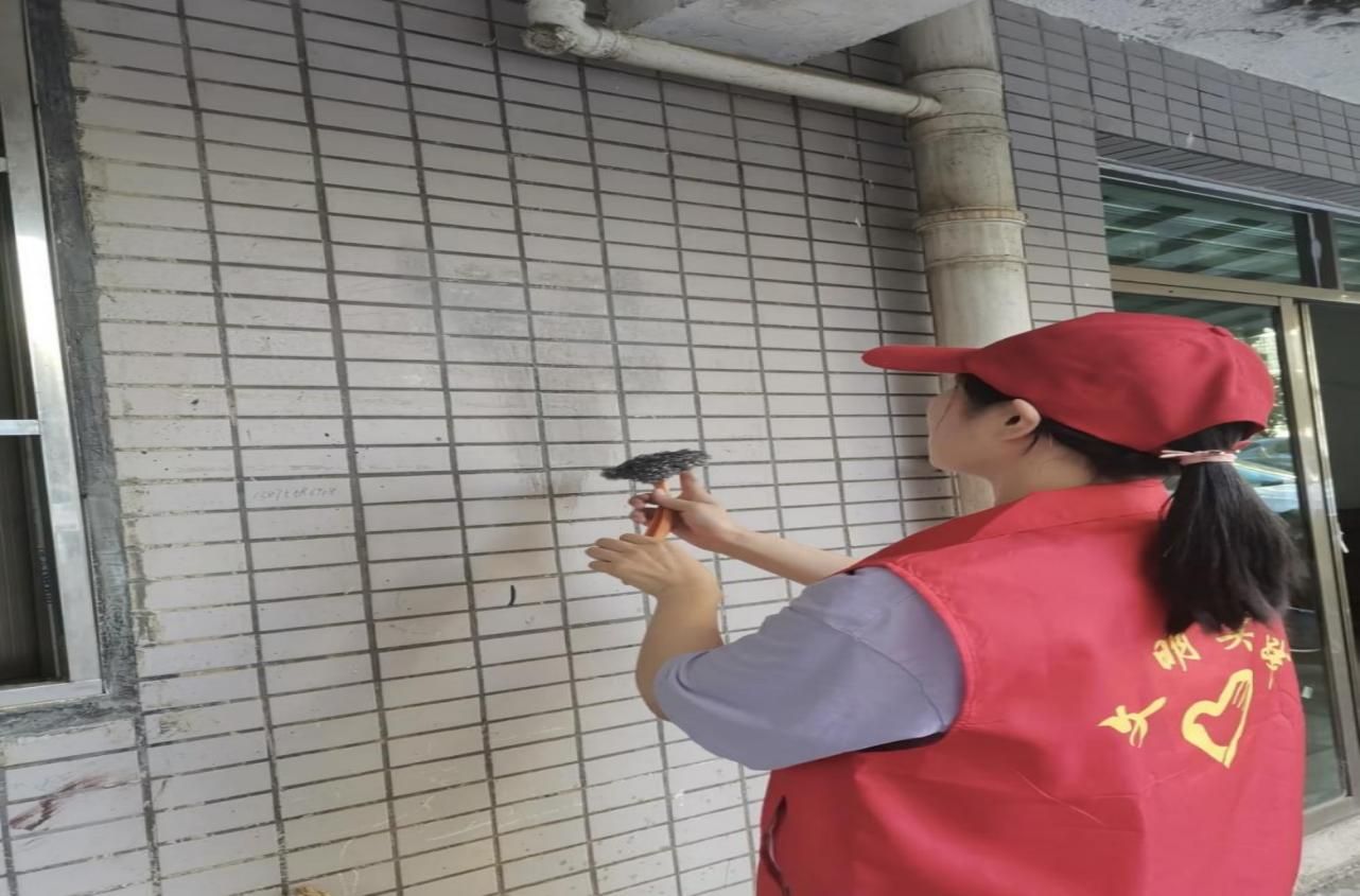 “黏在墙上的小广告得用热水泡软再刮,才能清理干净。”队员一边擦拭额头汗水一边分享技巧。面对粘贴已久的小广告,大家创新采用“热水浸润+工具剥离”的方法,即便手上磨出红痕也无人退缩;在解放路路段,队员们合力搬运长期堆放的建筑垃圾,将碎石砖块逐一清运至指定地点,让杂乱角落重归整洁。