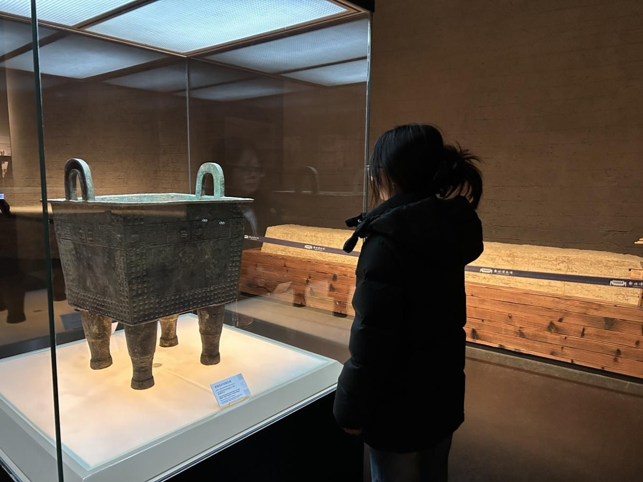 接下来重点参观了 “天地之中”核心展厅。步入 “创世王都” 单元,队员们在兽面乳钉纹铜方鼎前久久伫立。