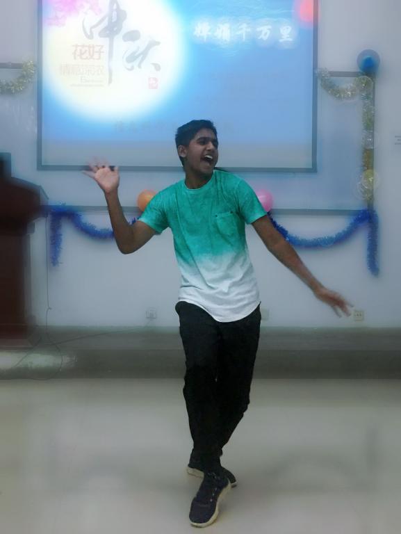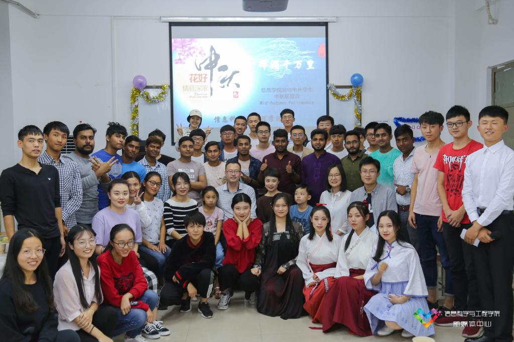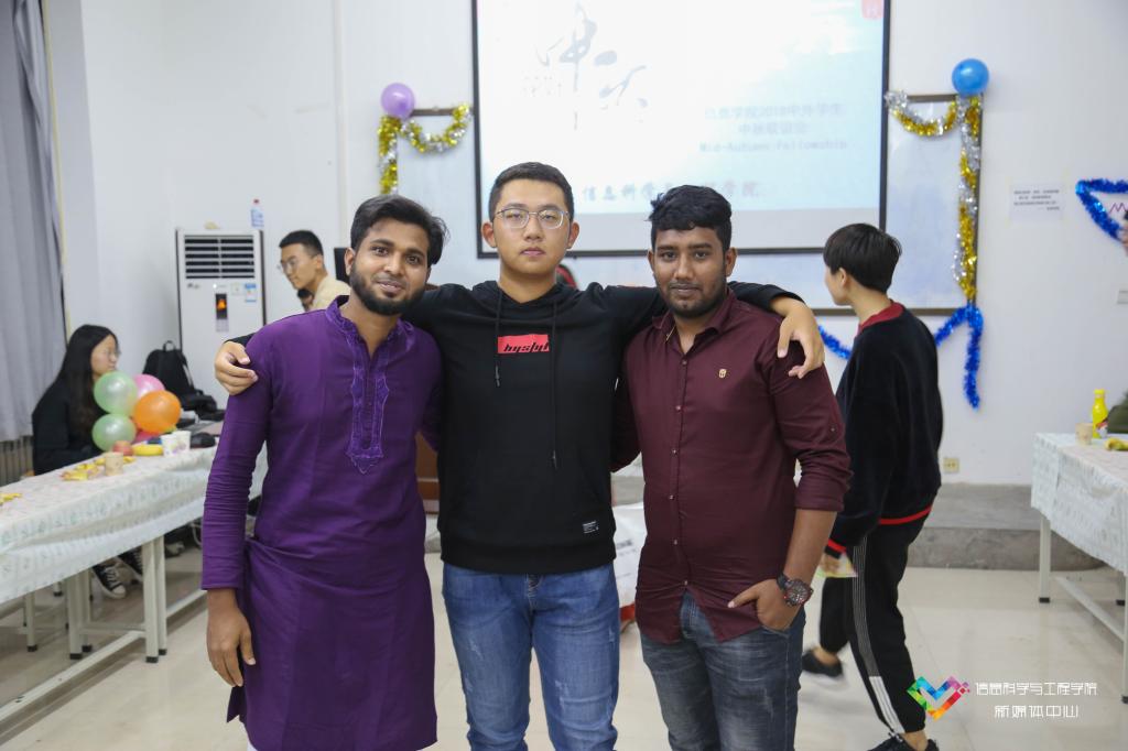 大家在欣赏精彩的节目之余,也切身体验着中秋习俗的温馨,一边尝月饼、品清茶,一边欢快地参加着“击鼓传花”游戏。这一刻,让人感受到的是“四海一家”的其乐融融,是四处洋溢的青春活力,是不同肤色不同面孔背后同样的款款善意。辅导员许森组织在场所有同学建立了微信群,促进跨国界、跨年级、跨专业的沟通互助,并留下了见证yanetfix