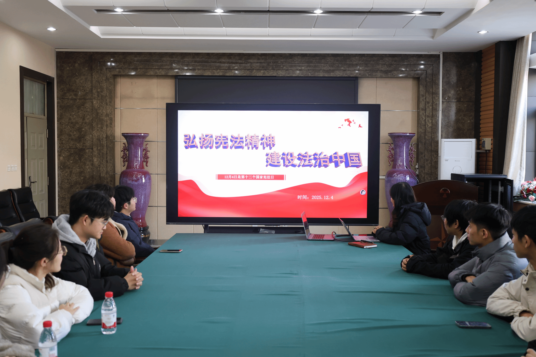 以“国家宪法日”为契机,组织全院团学骨干,在惟学楼6225会议室开展“弘扬宪法精神建设法治中国”主题学习活动。活动旨在以团学骨干为引领,带动全院青年形成“尊崇宪法、学习宪法、遵守宪法、维护宪法、运用宪法”的良好氛围,为学院法治教育与思想引领工作注入新动能。